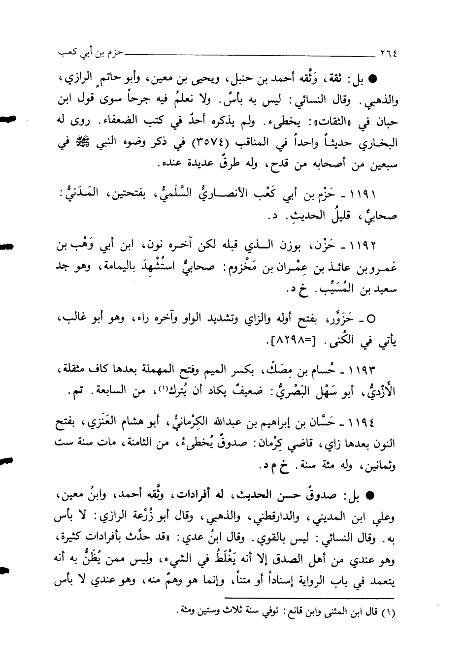 1191 - حَزْم بن أبي كَعْب الأنصاريُّ السَّلَميُّ، بفتحتين، المَدَنيُّ: صحابيٌّ، قليلُ الحديثِ. د.