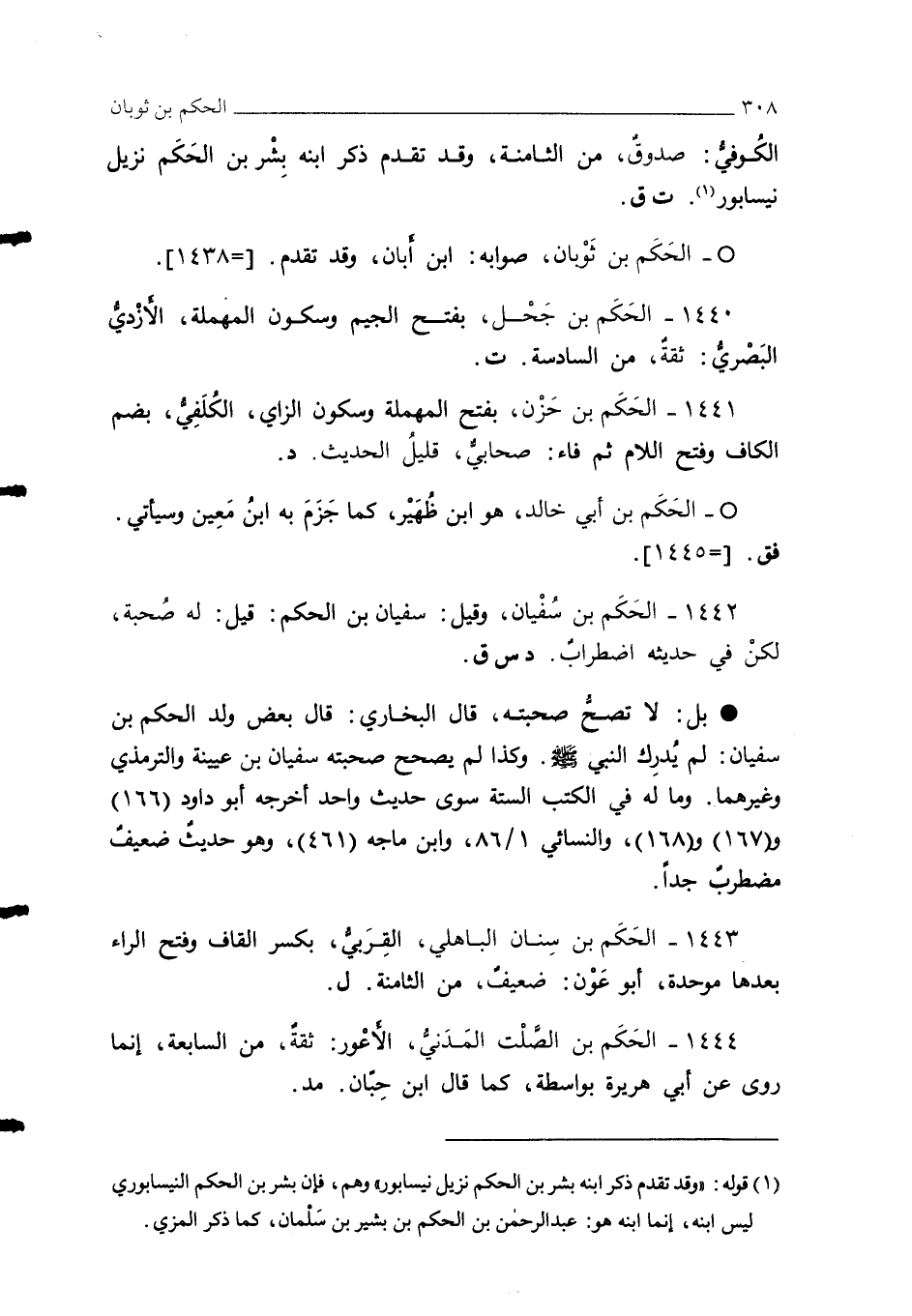 1440 - الحَكَم بن جَحْل، بفتح الجيم وسكون المهملة، الأزْدي البَصْريُّ: ثقة، من السادسة. ت.