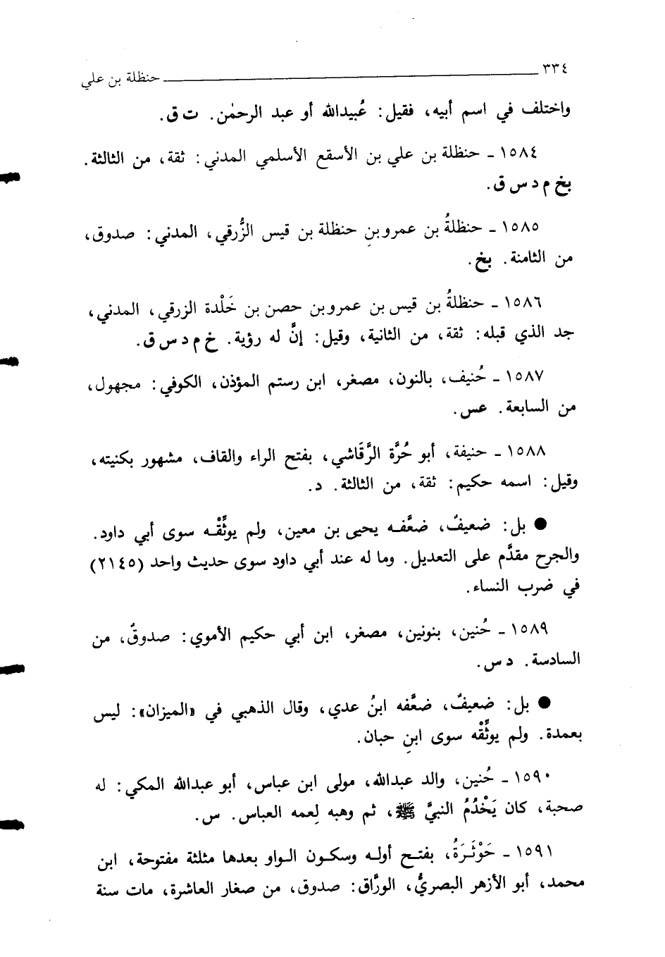1584 - حنظلة بن علي بن الأسقع الأسلمي المدني: ثقة، من الثالثة. بخ م د س ق.