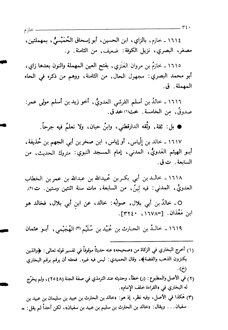 1616 - خالدُ بن أسلم القرشي العدويُّ، أخو زيد بن أسلم مولى عمر: صدوقٌ، مِن الخامسة. خت (¬1) خد ق.