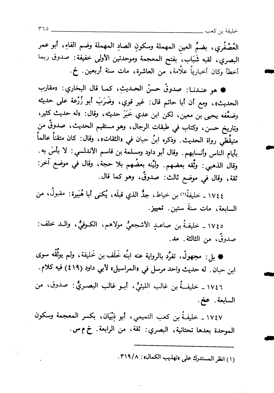 (¬1) انظر المستدرك على "تهذيب الكمال": 8/ 319.