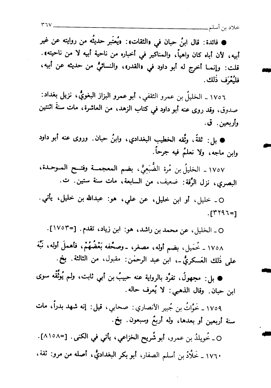 1760 - خَلَّادُ بن أسلم الصفار، أبو بكر البغداديُّ، أصله من مرو: ثقة،