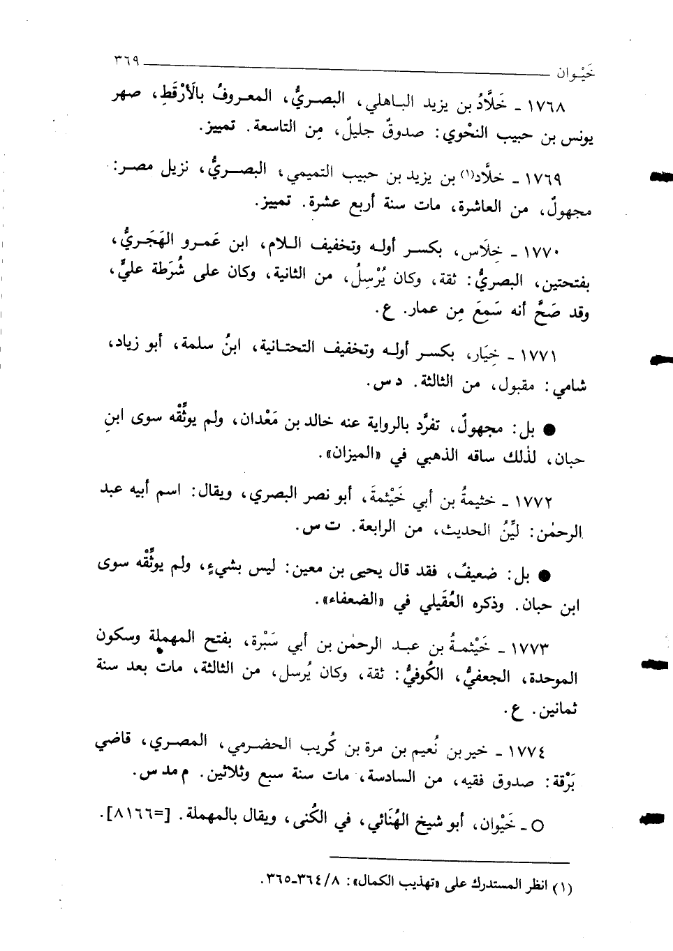 (¬1) انظر المستدرك على "تهذيب الكمال" 8/ 364 - 365.