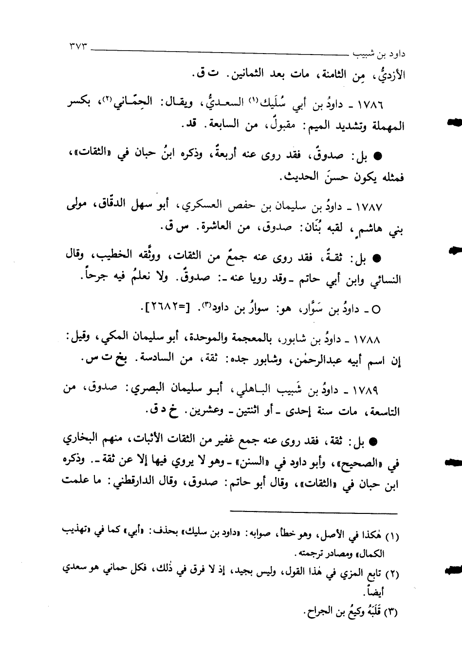 1789 - داودُ بن شَبيب الباهلي، أبو سليمان البصري: صدوق، من التاسعة، مات سنة إحدى - أو اثنتين - وعشرين. خ د ق.