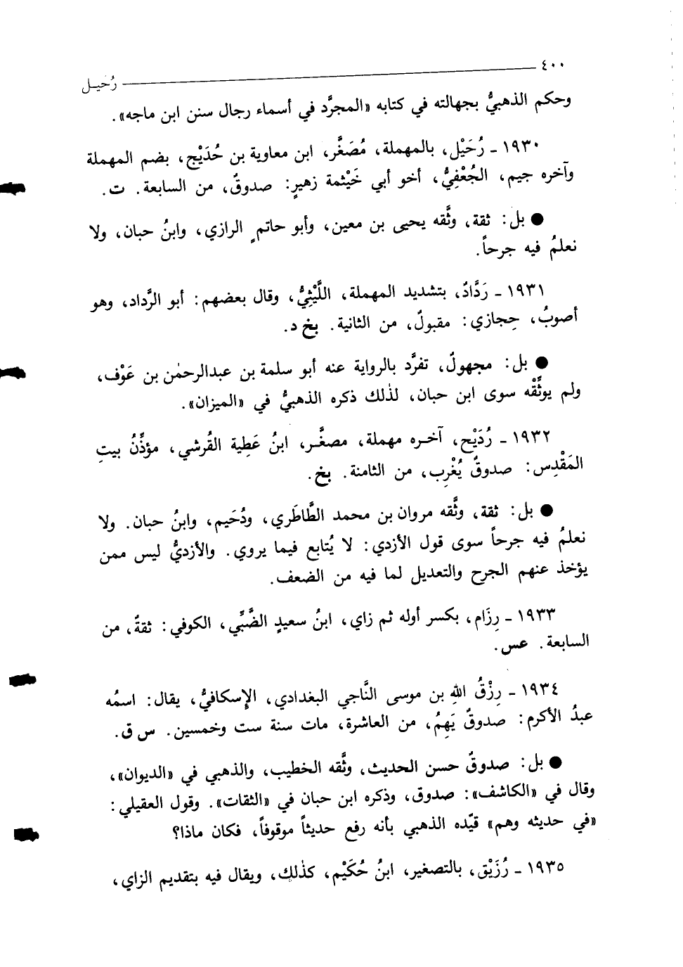 1932 - رُدَيْح، آخره مهملة، مصغَّر، ابنُ عَطِية القُرشي، مؤذِّنُ بيتِ المَقْدِس: صدوقٌ يُغْرِب، من الثامنة. بخ.