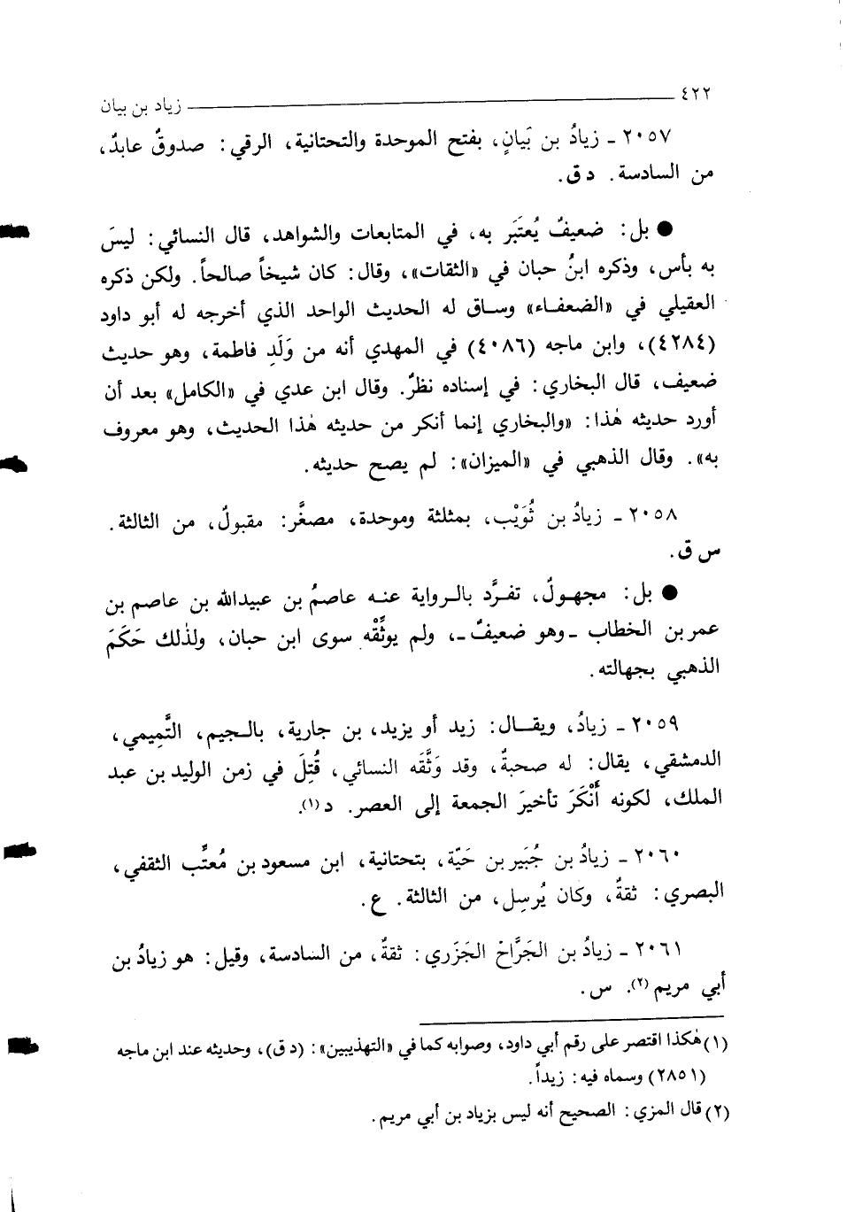 2057 - زيادُ بن بَيانٍ، بفتح الموحدة والتحتانية، الرقي: صدوقٌ عابدٌ، من السادسة. د ق.