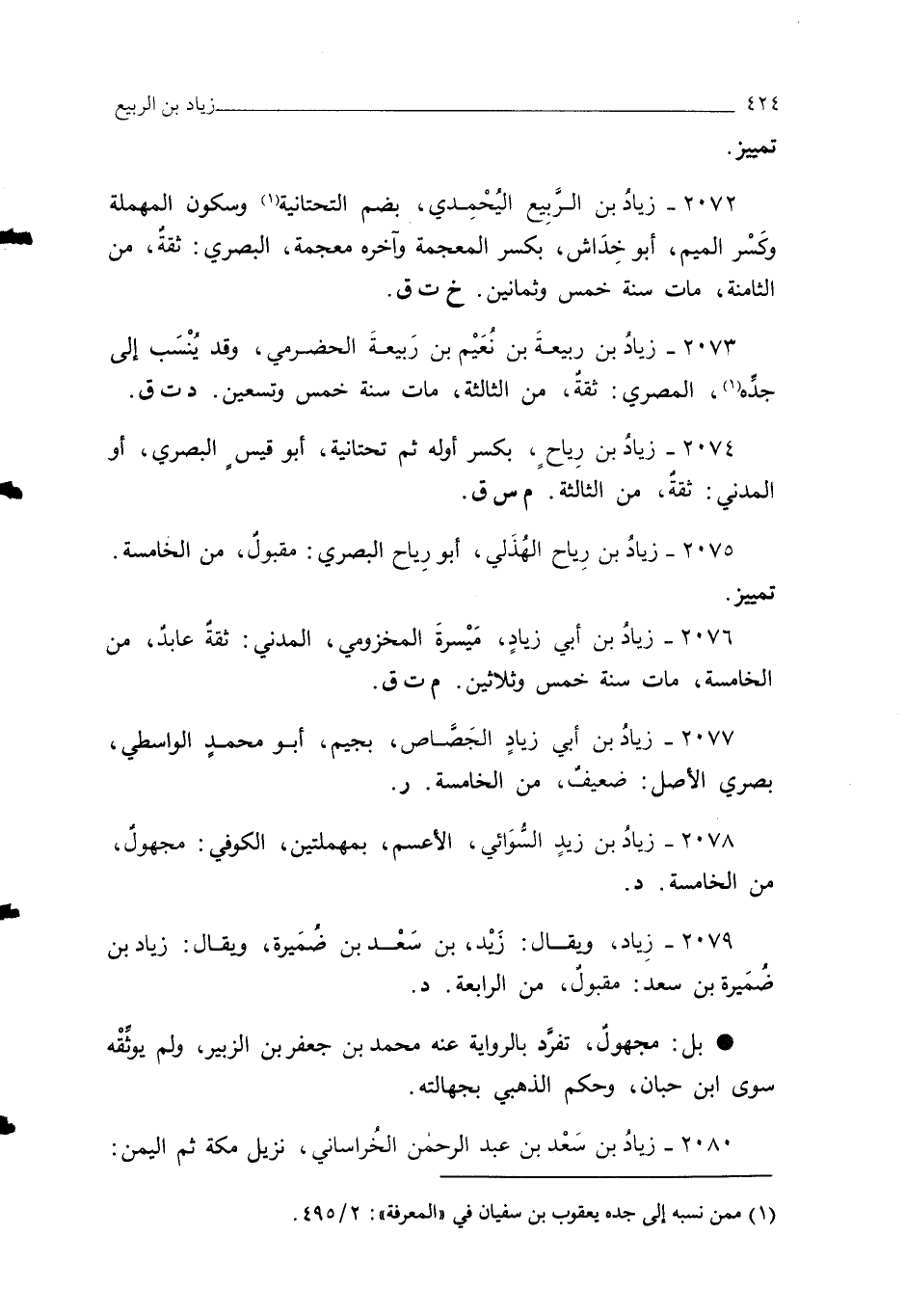 2077 - زيادُ بن أبي زيادٍ الجَصَّاص، بجيم، أبو محمدٍ الواسطي، بصري الأصل: ضعيفٌ، من الخامسة. ر.