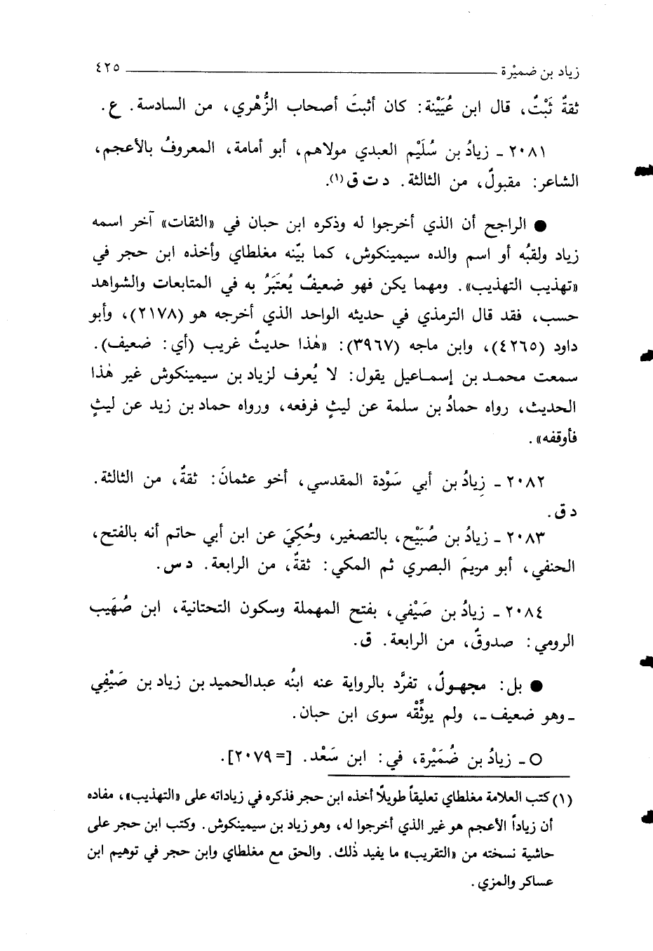 ° - زيادُ بن ضُمَيْرة، في: ابنُ سَعْد. [= 2079].