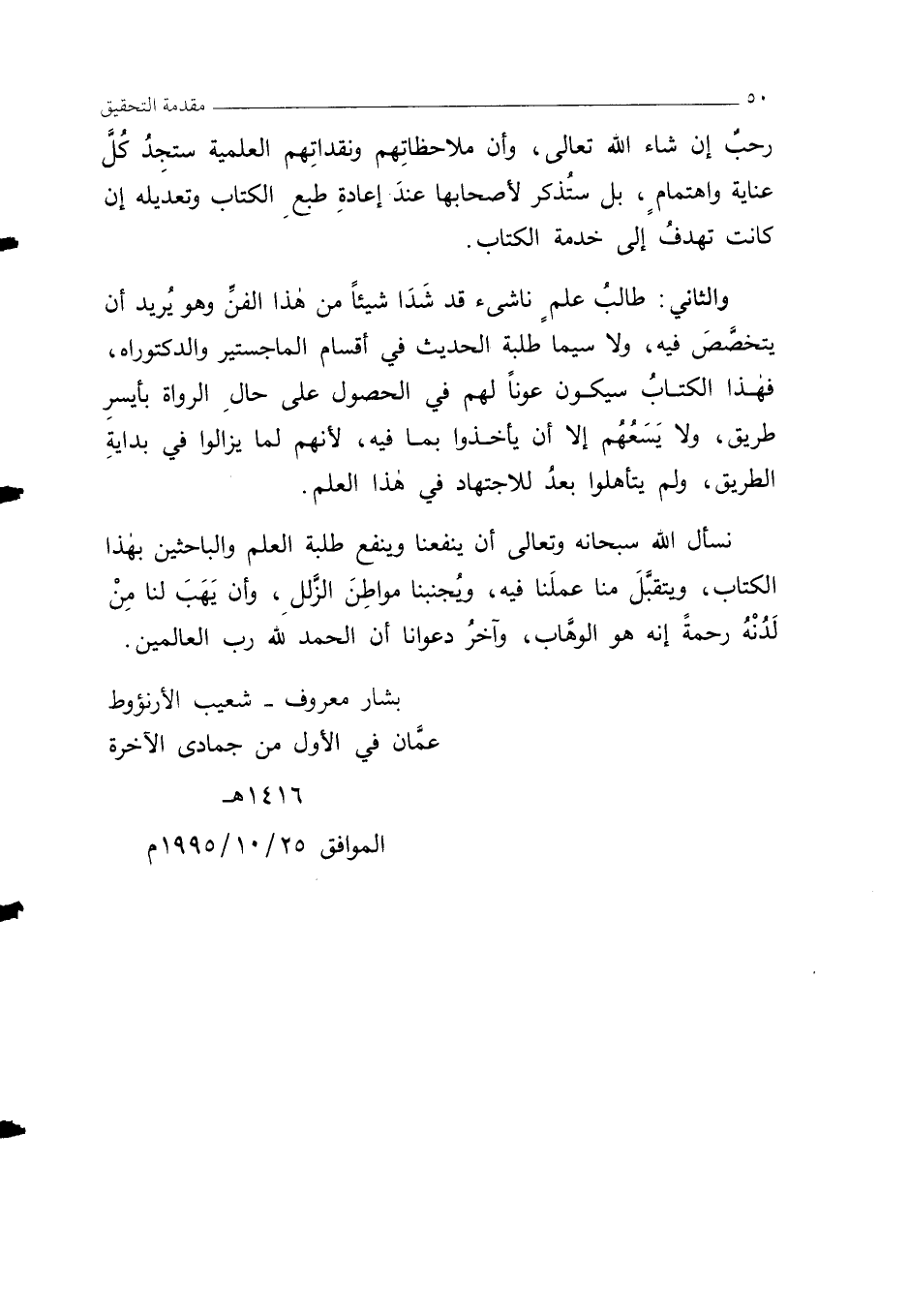 رحبٌ إن شاء الله تعالى، وأن ملاحظاتِهم ونقداتِهم العلمية ستجِدُ كُل عناية واهتمام، بل ستُذكر لأصحابها عندَ إعادةِ طبع الكتاب وتعديله إن كانت تهدفُ إلى خدمة الكتاب.