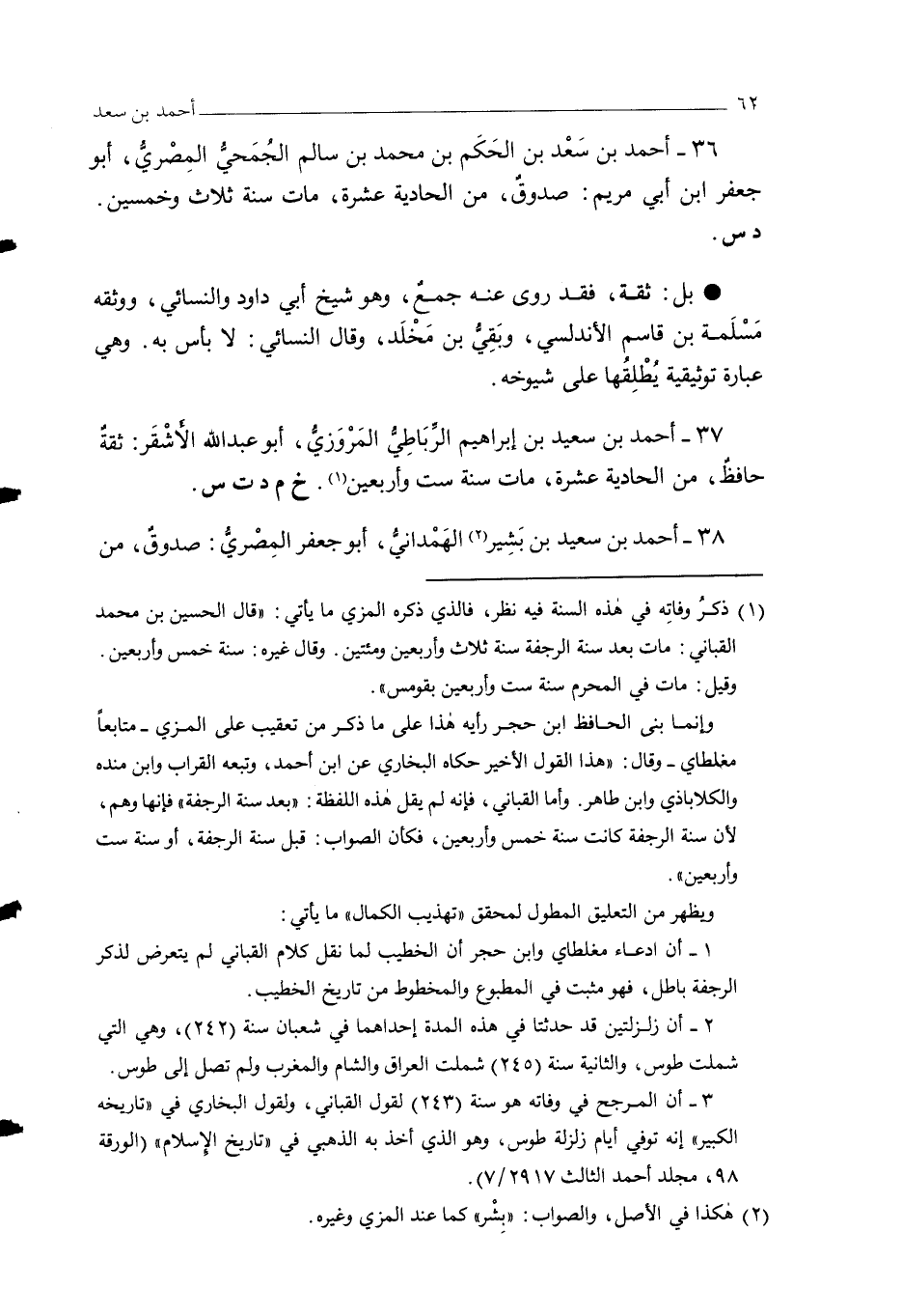 ويظهر من التعليق المطول لمحقق "تهذيب الكمال" ما يأتي: