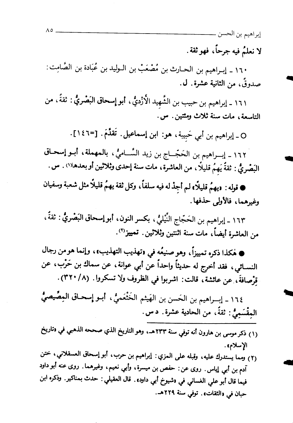 160 - إبراهيم بن الحارث بن مُصْعَب بن الوليد بن عُبَادة بن الصَّامِت: صدوقٌ، من الثانية عشرة. ل.