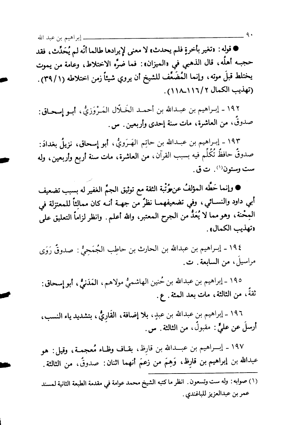 192 - إبراهيم بن عبد الله بن أحمد الخَلَّال المَرْوَزيُّ، أبو إسحاق: صدوقٌ، من العاشرة، مات سنة إحدى وأربعين. س.