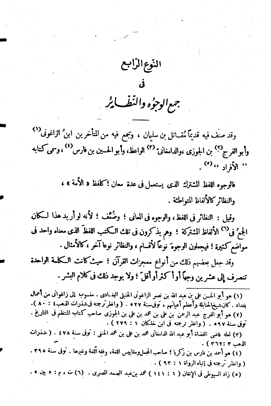 النوع الرابع: في جَمْعُ الْوُجُوهِ وَالنَّظَائِرِ