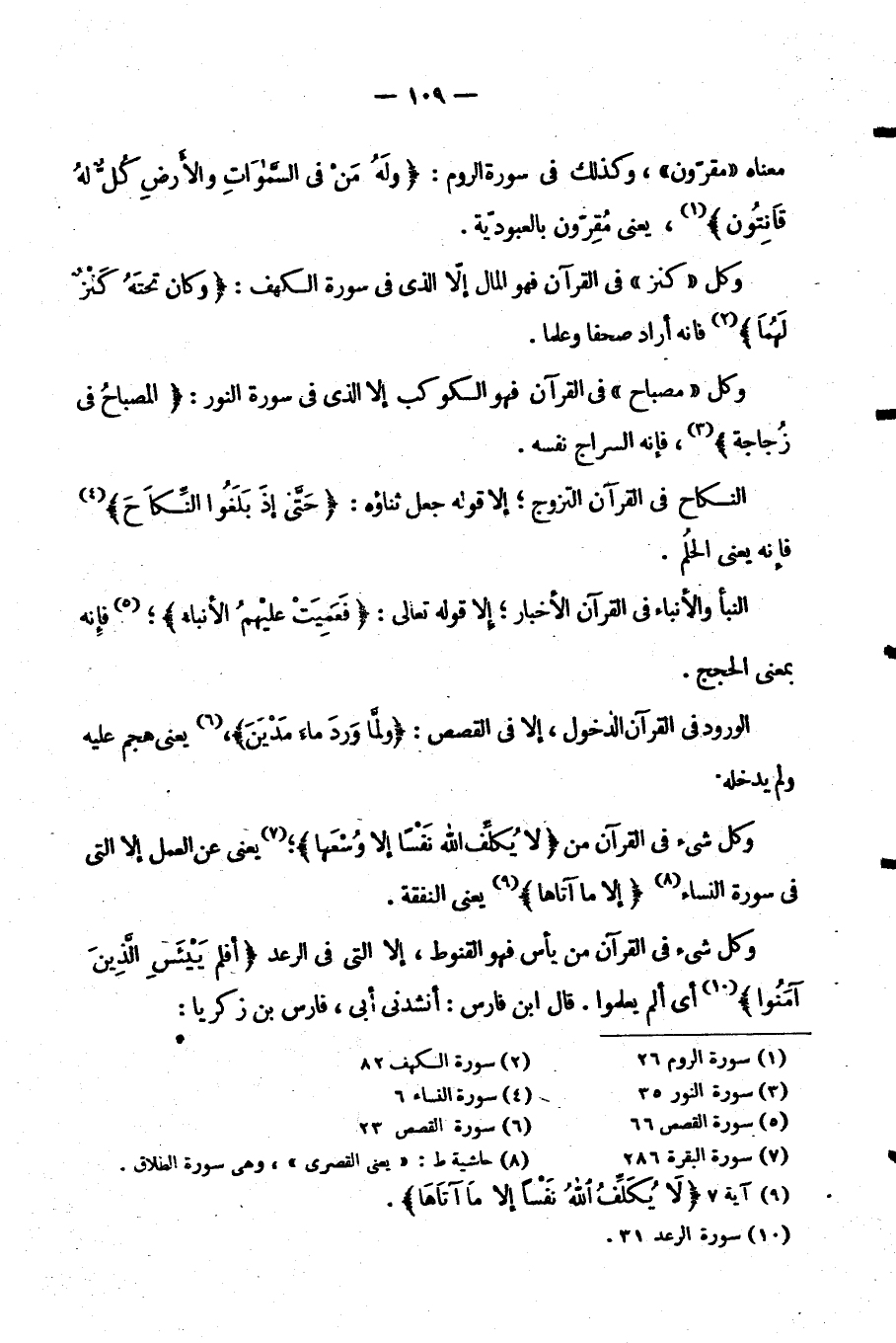 وَكُلُّ مِصْبَاحٍ فِي الْقُرْآنِ فَهُوَ الْكَوْكَبُ إِلَّا الَّذِي فِي سُورَةِ النور {المصباح في زجاجة} فَإِنَّهُ السِّرَاجُ نَفْسُهُ