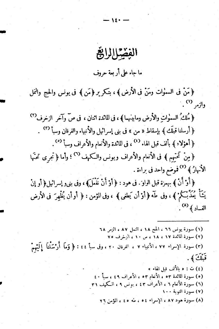 الْفَصْلُ الرَّابِعُ: مَا جَاءَ عَلَى أَرْبَعَةِ حُرُوفٍ