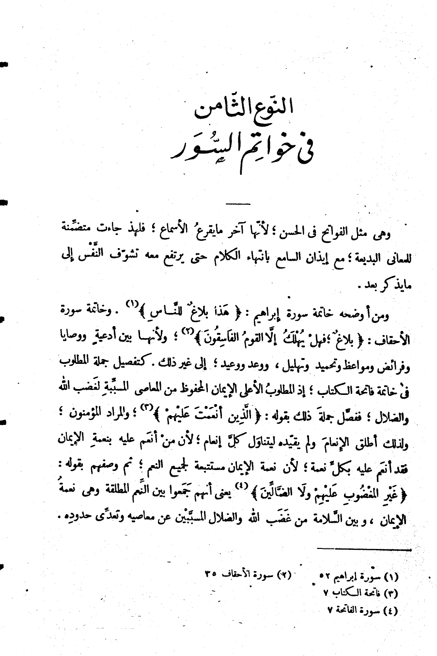 النَّوْعُ الثَّامِنُ: فِي خَوَاتِمِ السُّوَرِ