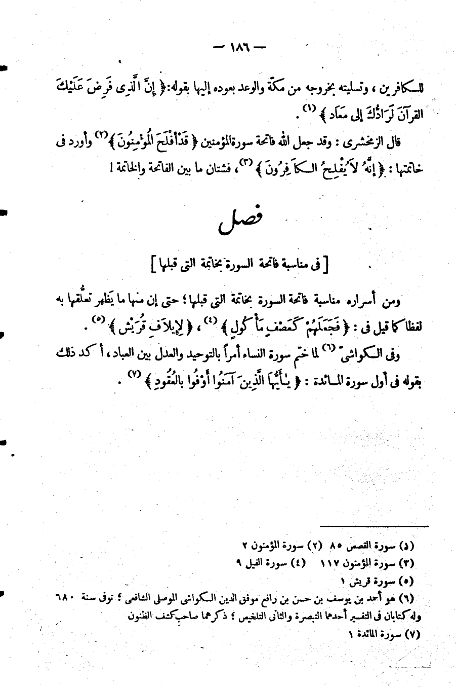 وَمِنْ أَسْرَارِهِ مُنَاسَبَةُ فَاتِحَةِ السُّورَةِ بِخَاتِمَةِ الَّتِي قَبْلَهَا حَتَّى إِنَّ مِنْهَا مَا يُظْهِرُ تَعَلُّقُهَا بِهِ لَفْظًا كَمَا قِيلَ فِي