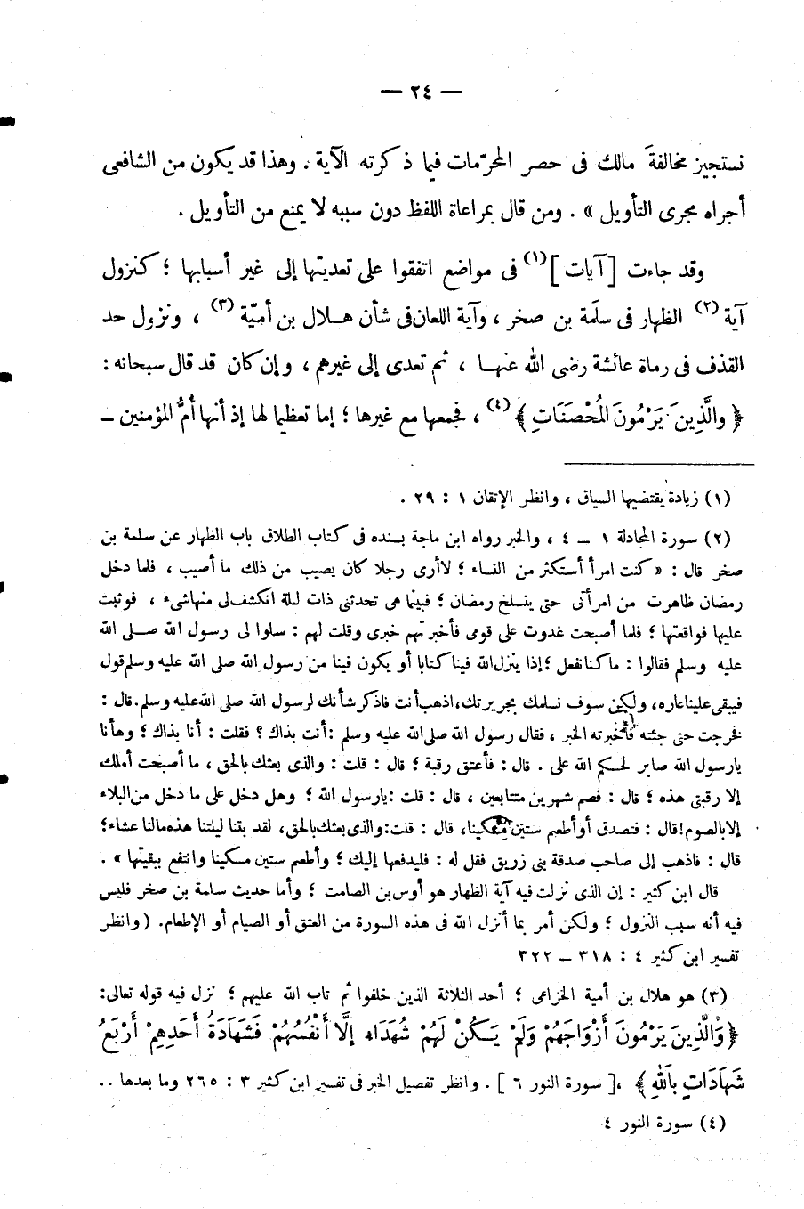 وَقَدْ جَاءَتْ آيَاتٌ فِي مَوَاضِعَ اتَّفَقُوا عَلَى تَعْدِيَتِهَا إِلَى غَيْرِ أَسْبَابِهَا كَنُزُولِ آيَةِ الظِّهَارِ فِي سَلَمَةَ بْنِ صَخْرٍ وَآيَةِ اللَّعَّانِ فِي شَأْنِ هِلَالِ بْنِ أُمَيَّةَ وَنُزُولِ حَدِّ الْقَذْفِ فِي رُمَاةِ عَائِشَةَ رَضِيَ اللَّهُ عَنْهَا ثُمَّ تَعَدَّى إِلَى غَيْرِهِمْ وَإِنْ كَانَ قَدْ قَالَ سُبْحَانَهُ {والذين يرمون المحصنات} فَجَمَعَهَا مَعَ غَيْرِهَا إِمَّا تَعْظِيمًا لَهَا إِذْ أَنَّهَا أُمُّ الْمُؤْمِنِينَ