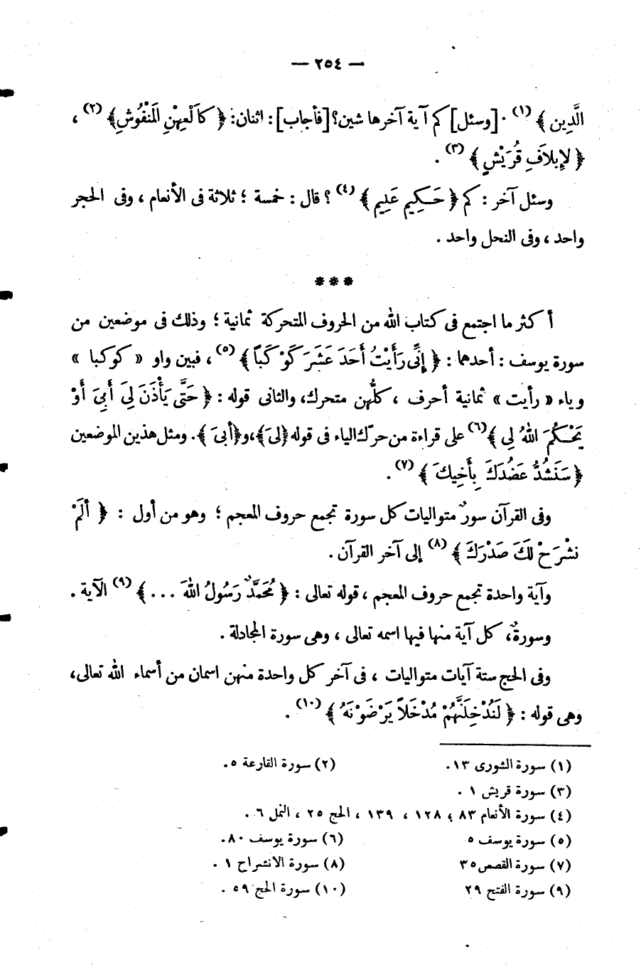 الدين} وَسُئِلَ كَمْ آيَةً آخِرُهَا شِينٌ؟ فَأَجَابَ: اثْنَانِ: {كالعهن المنفوش} {لإيلاف قُرَيْشٍ}