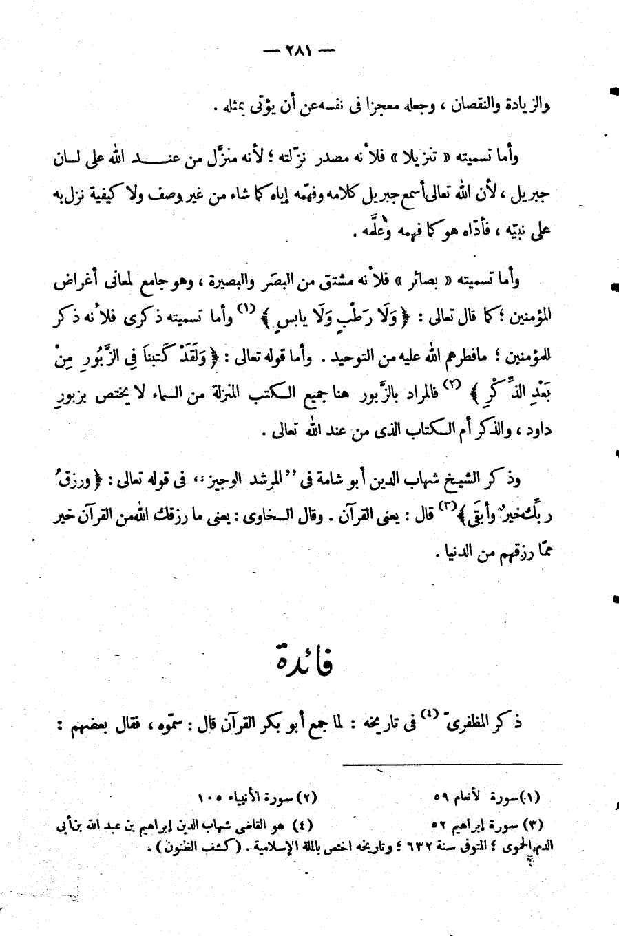 ذَكَرَ الْمُظَفَّرِيُّ فِي تَارِيخِهِ لَمَّا جَمَعَ أَبُو بَكْرٍ الْقُرْآنَ قَالَ سَمُّوهُ فقال بعضهم: