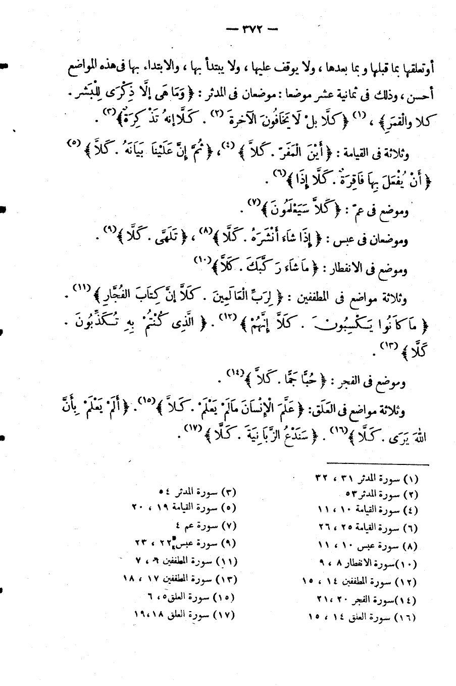 وَثَلَاثَةُ مَوَاضِعَ فِي الْعَلَقِ: {عَلَّمَ الْإِنْسَانَ مَا لم يعلم كلا} {ألم يعلم بأن الله يرى كلا} {سندع الزبانية كلا}
