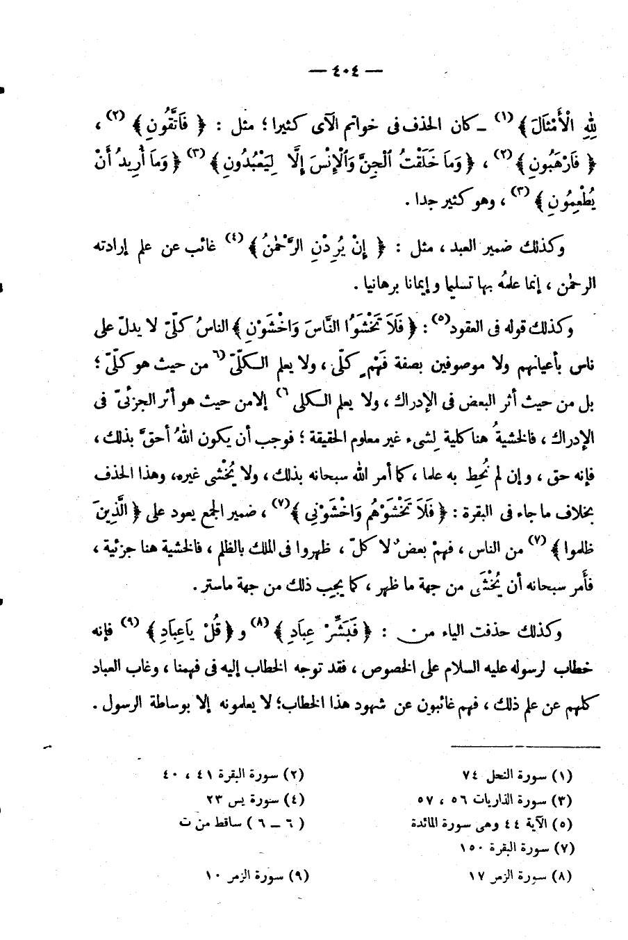 لله الأمثال} كَانَ الْحَذْفُ فِي خَوَاتِمِ الْآيِ كَثِيرًا مِثْلَ. {فاتقون} {فارهبون} {وما خلقت الجن والأنس إلا ليعبدون} {وما أريد أن يطعمون} وهو كثيرا جِدًّا