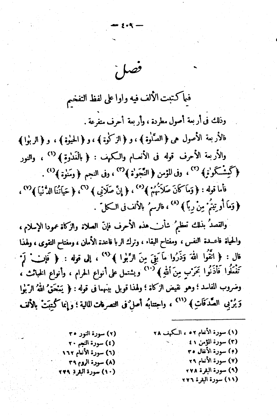 فَصْلٌ: فِيمَا كُتِبَتِ الْأَلِفُ فِيهِ وَاوًا عَلَى لَفْظِ التَّفْخِيمِ