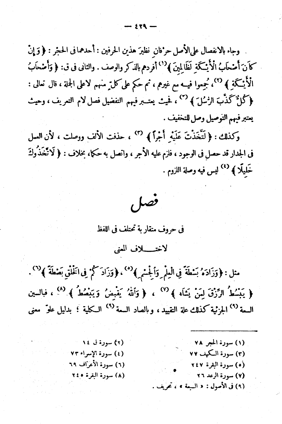 فَصْلٌ: فِي حُرُوفٍ مُتَقَارِبَةٍ تَخْتَلِفُ فِي اللَّفْظِ لِاخْتِلَافِ الْمَعْنَى