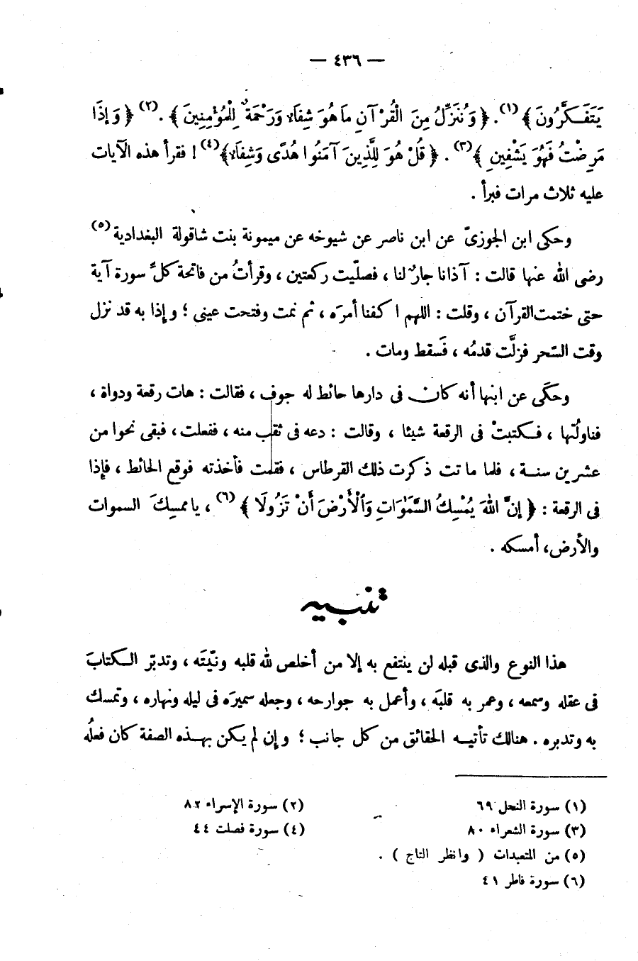 يتفكرون} {وَنُنَزِّلُ مِنَ الْقُرْآنِ مَا هُوَ شِفَاءٌ وَرَحْمَةٌ للمؤمنين} {وإذا مرضت فهو يشفين} {قل هو للذين آمنوا هدى وشفاء} فَقَرَأَ هَذِهِ الْآيَاتِ عَلَيْهِ ثَلَاثَ مَرَّاتٍ فَبَرَأَ