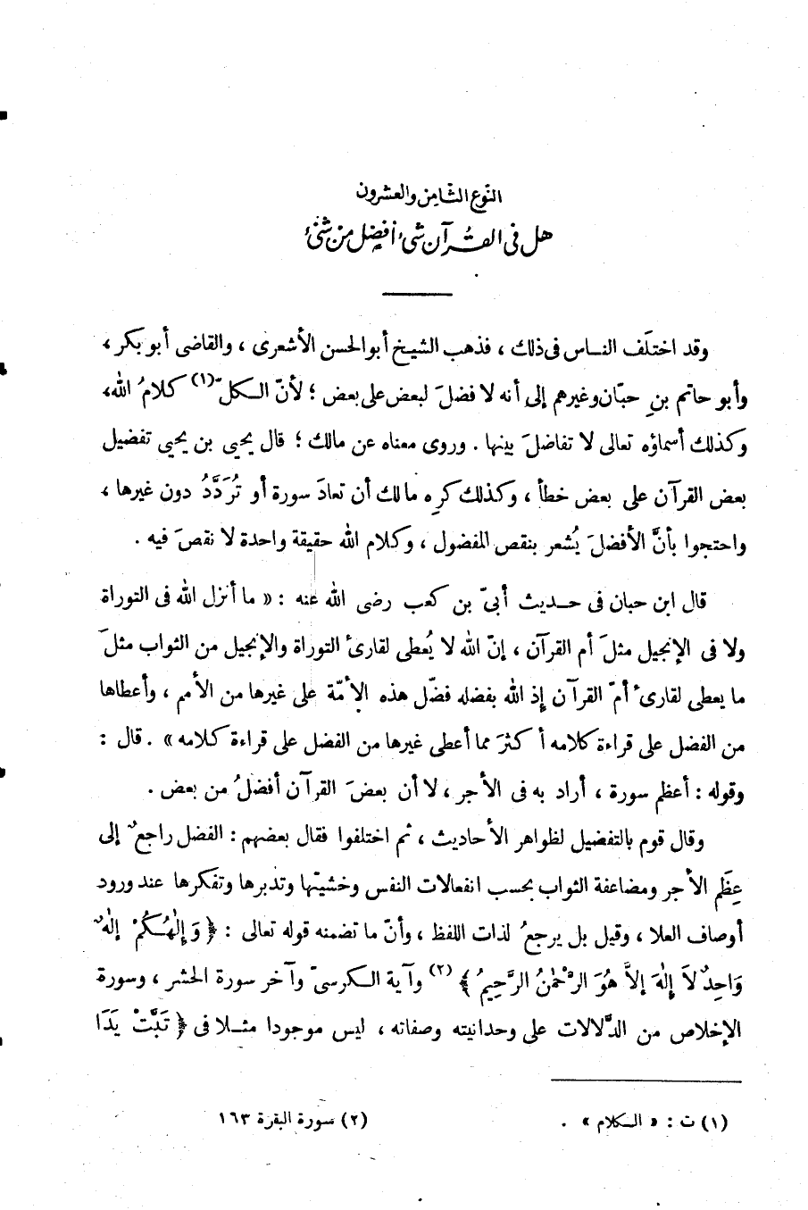 النَّوْعُ الثَّامِنُ وَالْعِشْرُونَ: هَلْ فِي الْقُرْآنِ شَيْءٌ أَفْضَلُ مِنْ شَيْءٍ