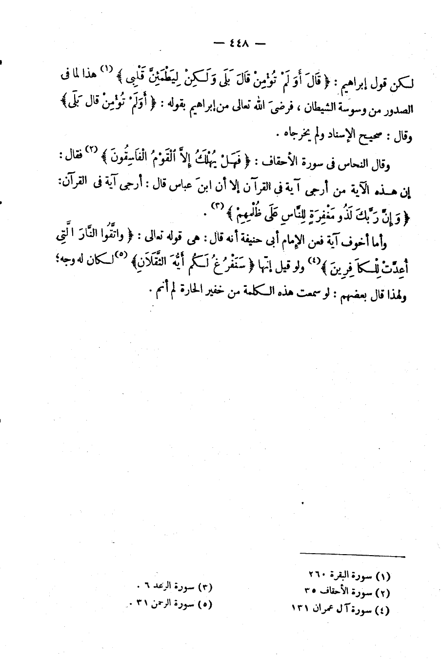 وَقَالَ النَّحَّاسُ فِي سُورَةِ الْأَحْقَافِ: {فهل يهلك إلا القوم الفاسقون} فَقَالَ إِنَّ هَذِهِ الْآيَةَ مِنْ أَرْجَى آيَةٍ فِي الْقُرْآنِ إِلَّا أَنَّ ابْنَ عَبَّاسٍ قَالَ أَرْجَى آيَةٍ فِي الْقُرْآنِ: {وَإِنَّ رَبَّكَ لَذُو مَغْفِرَةٍ لِلنَّاسِ عَلَى ظُلْمِهِمْ}