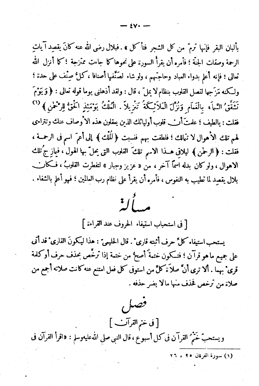 مسألة: في استحباب استيفاء الحروف عند القراءة