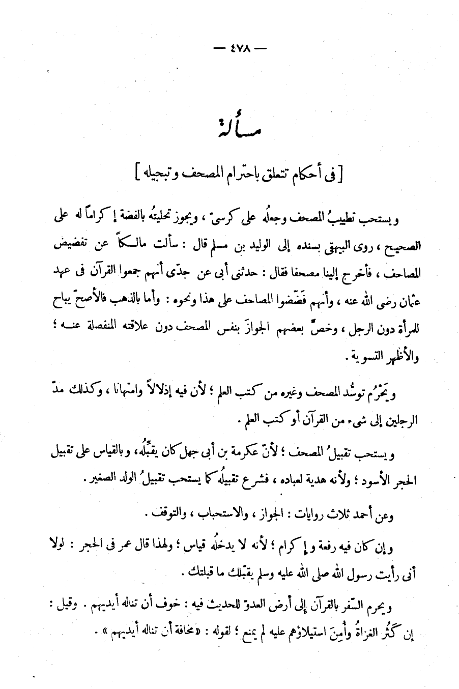 مسألة: في أحكام تتعلق باحترام المصحف وتبجيله