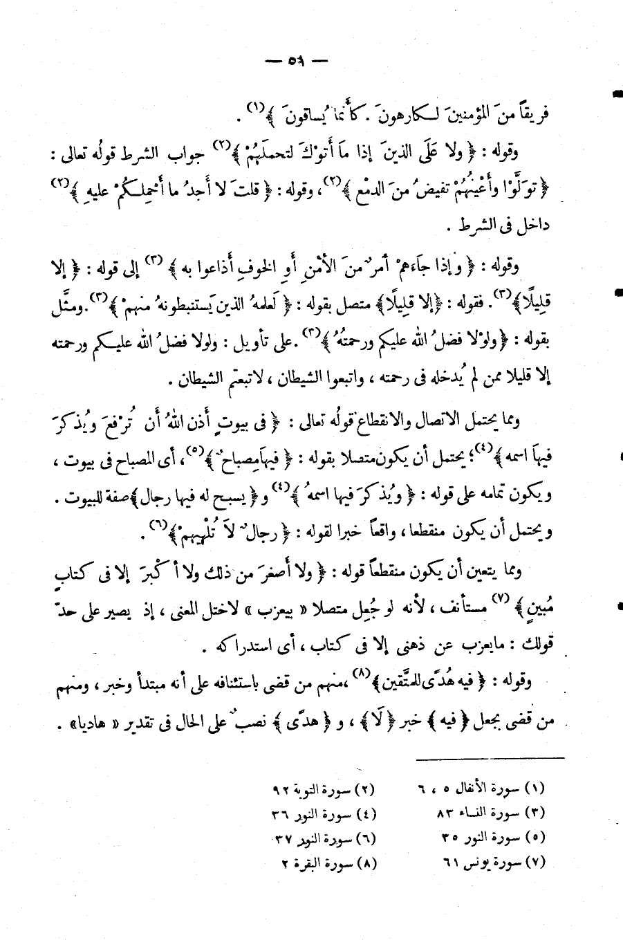 وَمِمَّا يَحْتَمِلُ الِاتِّصَالَ وَالِانْقِطَاعَ قَوْلُهُ تَعَالَى: {فِي بُيُوتٍ أَذِنَ اللَّهُ أن ترفع ويذكر فيها اسمه} يَحْتَمِلُ أَنْ يَكُونَ مُتَّصِلًا بِقَوْلِهِ: {فِيهَا مِصْبَاحٌ} أَيِ الْمِصْبَاحُ فِي بُيُوتٍ وَيَكُونُ تَمَامُهُ عَلَى قوله: {ويذكر فيها اسمه} و (يسبح له فيها رِجَالٌ) صِفَةٌ لِلْبُيُوتِ وَيَحْتَمِلُ أَنْ يَكُونَ مُنْقَطِعًا خبرا لقوله: و {رجال لا تلهيهم}