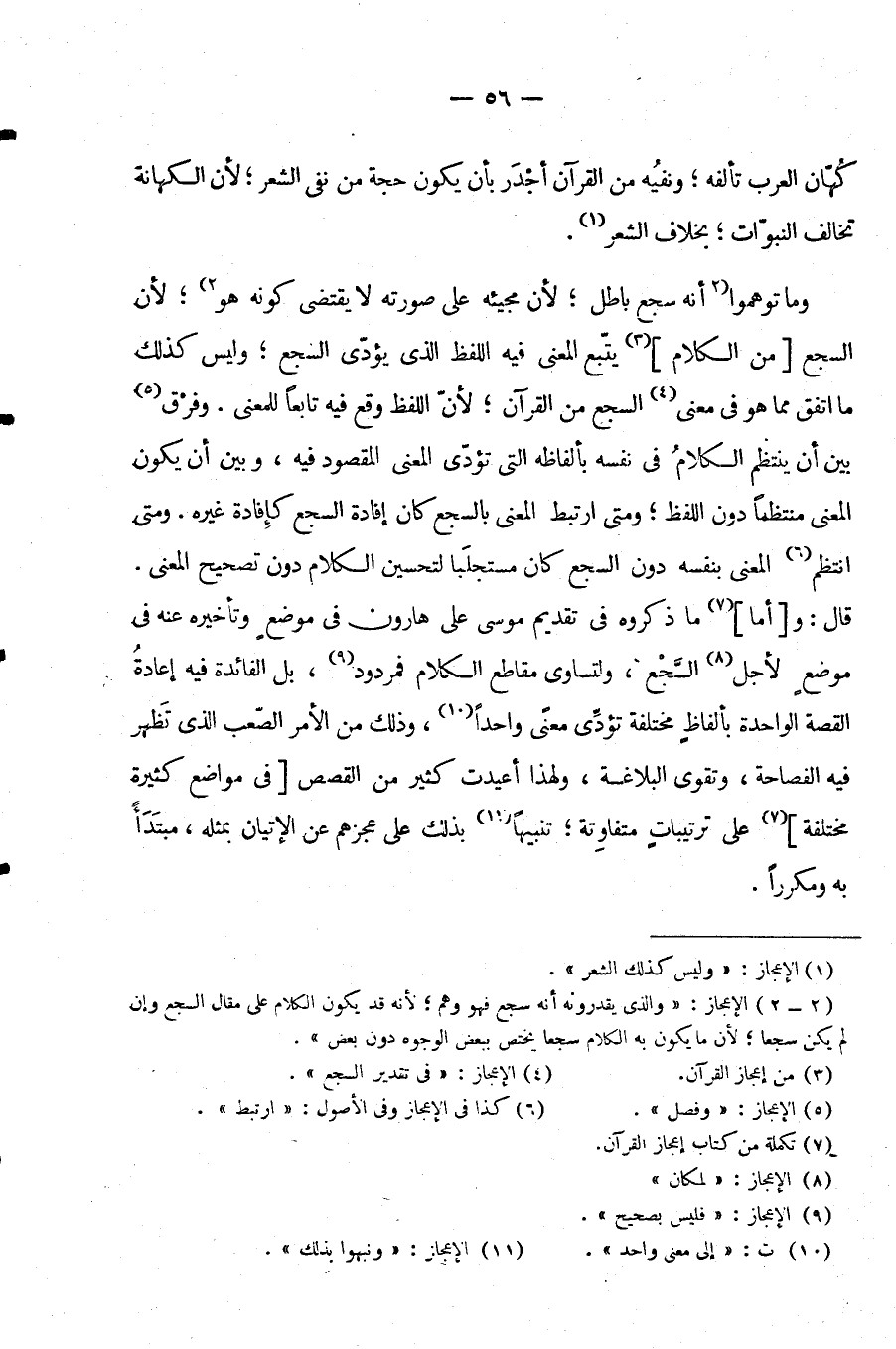 وَمَا تَوَهَّمُوا أَنَّهُ سَجْعٌ بَاطِلٌ لِأَنَّ مَجِيئَهُ عَلَى صُورَتِهِ لَا يَقْتَضِي كَوْنَهُ هُوَ لِأَنَّ السَّجْعَ مِنَ الْكَلَامِ يَتْبَعُ الْمَعْنَى فِيهِ اللَّفْظَ الَّذِي يُؤَدِّي السَّجْعَ وَلَيْسَ كَذَلِكَ مَا اتَّفَقَ مِمَّا هُوَ فِي مَعْنَى السَّجْعِ مِنَ الْقُرْآنِ لِأَنَّ اللَّفْظَ وَقَعَ فِيهِ تَابِعًا لِلْمَعْنَى وَفَرَّقَ بَيْنَ أَنْ يَنْتَظِمَ الْكَلَامُ فِي نَفْسِهِ بِأَلْفَاظِهِ الَّتِي تُؤَدِّي الْمَعْنَى الْمَقْصُودَ فِيهِ وَبَيْنَ أَنْ يَكُونَ الْمَعْنَى مُنْتَظِمًا دُونَ اللَّفْظِ وَمَتَى ارْتَبَطَ الْمَعْنَى بِالسَّجْعِ كَانَ إِفَادَةُ السَّجْعِ كَإِفَادَةِ غَيْرِهِ وَمَتَى انْتَظَمَ الْمَعْنَى بِنَفْسِهِ دُونَ السَّجْعِ كَانَ مُسْتَجْلِبًا لِتَحْسِينِ الكلام دون تصحيح المعنى