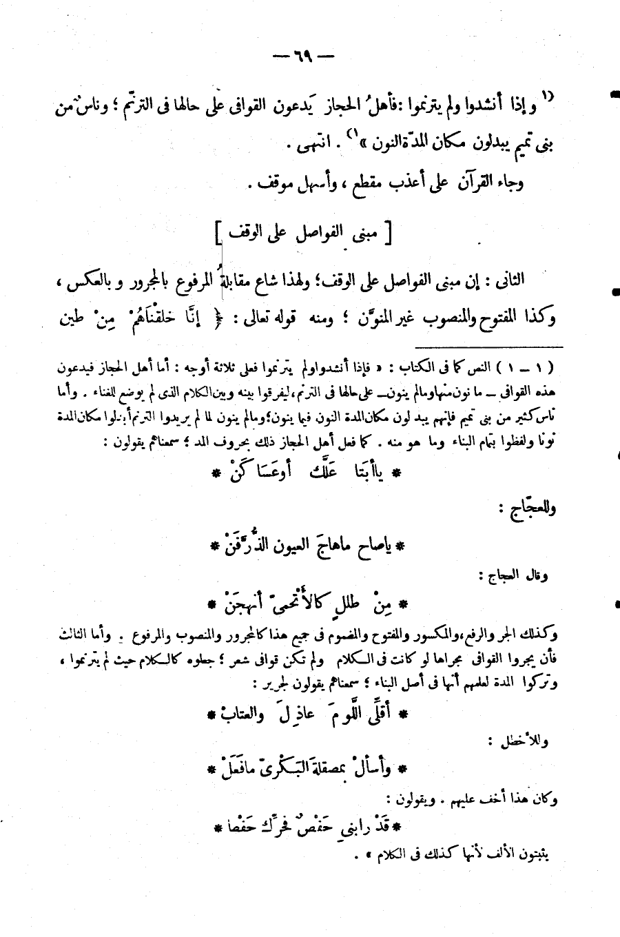 وَإِذَا أَنْشَدُوا وَلَمْ يَتَرَنَّمُوا فَأَهْلُ الْحِجَازِ يَدَعُونَ القوافي على حالها في الترنم وناس مِنْ بَنِي تَمِيمٍ يُبَدِّلُونَ مَكَانَ الْمَدَّةِ النُّونَ انْتَهَى