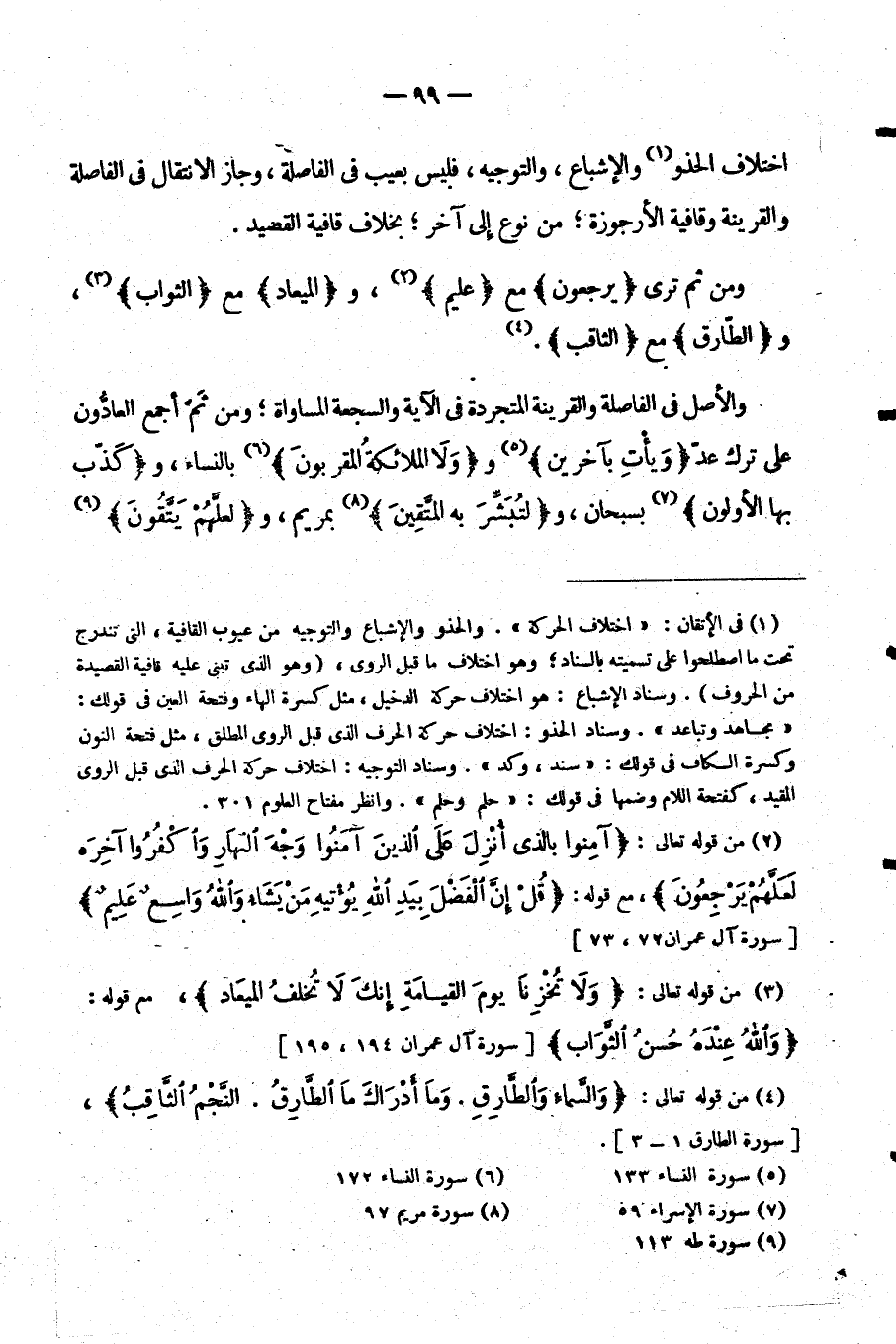 اخْتِلَافِ الْحَذْوِ وَالْإِشْبَاعِ وَالتَّوْجِيهِ فَلَيْسَ بِعَيْبٍ فِي الفاصلة وجاز الانتقال فِي الْفَاصِلَةِ وَالْقَرِينَةِ وَقَافِيَةِ الْأُرْجُوزَةِ مِنْ نَوْعٍ إِلَى آخَرَ بِخِلَافِ قَافِيَةِ الْقَصِيدِ.