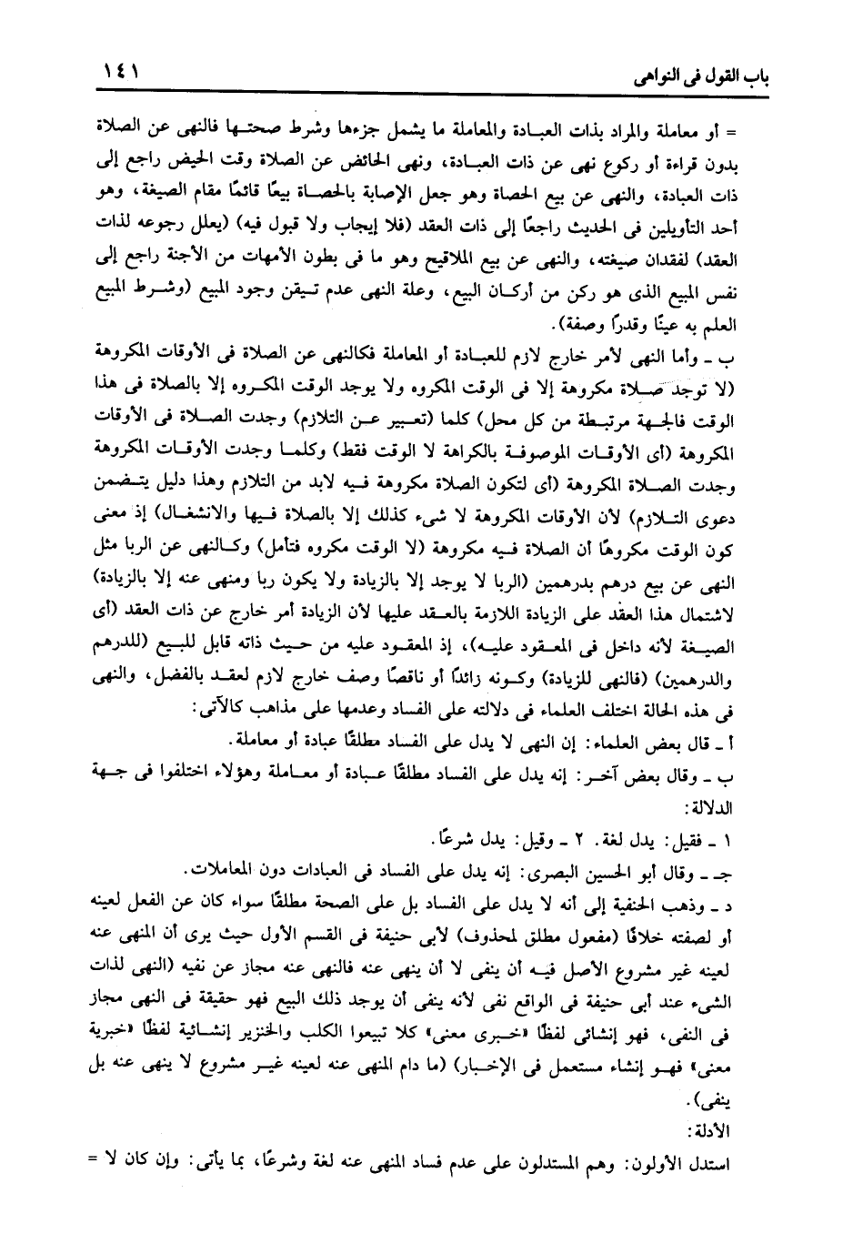 أ - قال بعض العلماء إن النهي لا يدل على الفساد مطلقا عبدة أو معاملة.