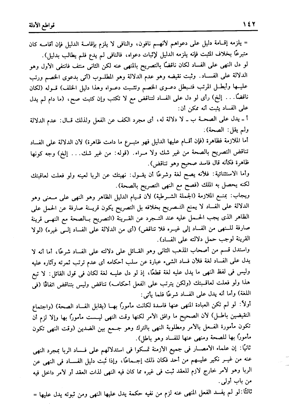 واستدل قسم من أصحاب المذهب الثاني وهو القائل على دلالته على الفساد شرعا أما أنه لا يدل على الفساد لغة فلأن فساد الشيء عبارة عن سلب أحكامه أي عدم ترتب ثمرته وآثاره عليه وليس في لفظ النهي ما يدل عليه لغة قطعا إذ لو دل عليه لغة لكان في قول القائل لا تبع هذا ولو فعلت لعاقبتك "ولكن يترتب على الفعل أحكامه" تناقض وليس بتناقض اتفاقا "في اللغة" وأما أنه يدل على الفساد شرعا فلما يأتي: