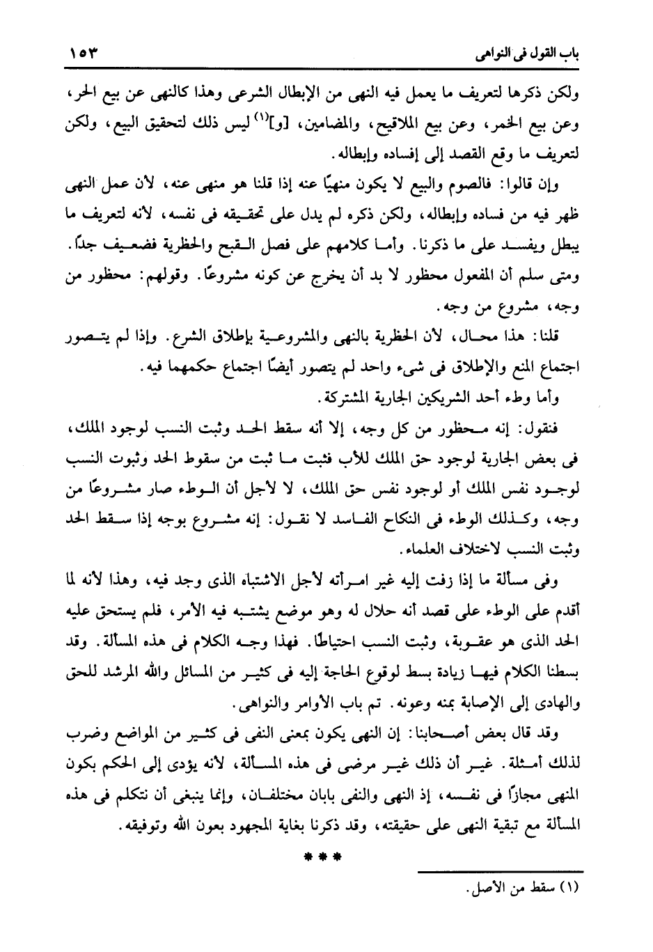 ولكن ذكرها لتعريف مايعمل فيه النهى من الإبطال الشرعى وهذا كالنهى عن بيع الحر وعن بيع الخمر وعن بيع الملاقيح والمضامين [و] 1 ليس ذلك لتحقيق البيع ولكن لتعريف ما وقع القصد إلى إفساده وإبطاله.