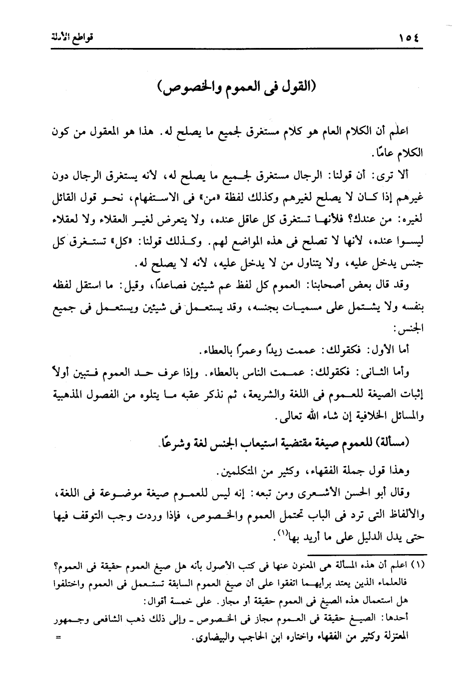 اعلم أن الكلام العام هو كلام مستغرق لجميع ما يصلح له هذا هو المعقول من كون الكلام عاما.