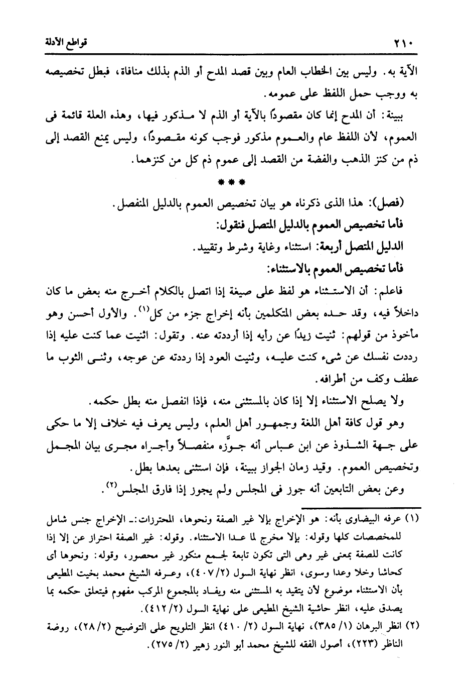 2 انظر البرهان 1/385 نهاية السول 2/410 انظر التلويح على التوضيح 2/28 روضة الناظر 223 أصول الفقه للشيخ أبو النور زهير 2/275