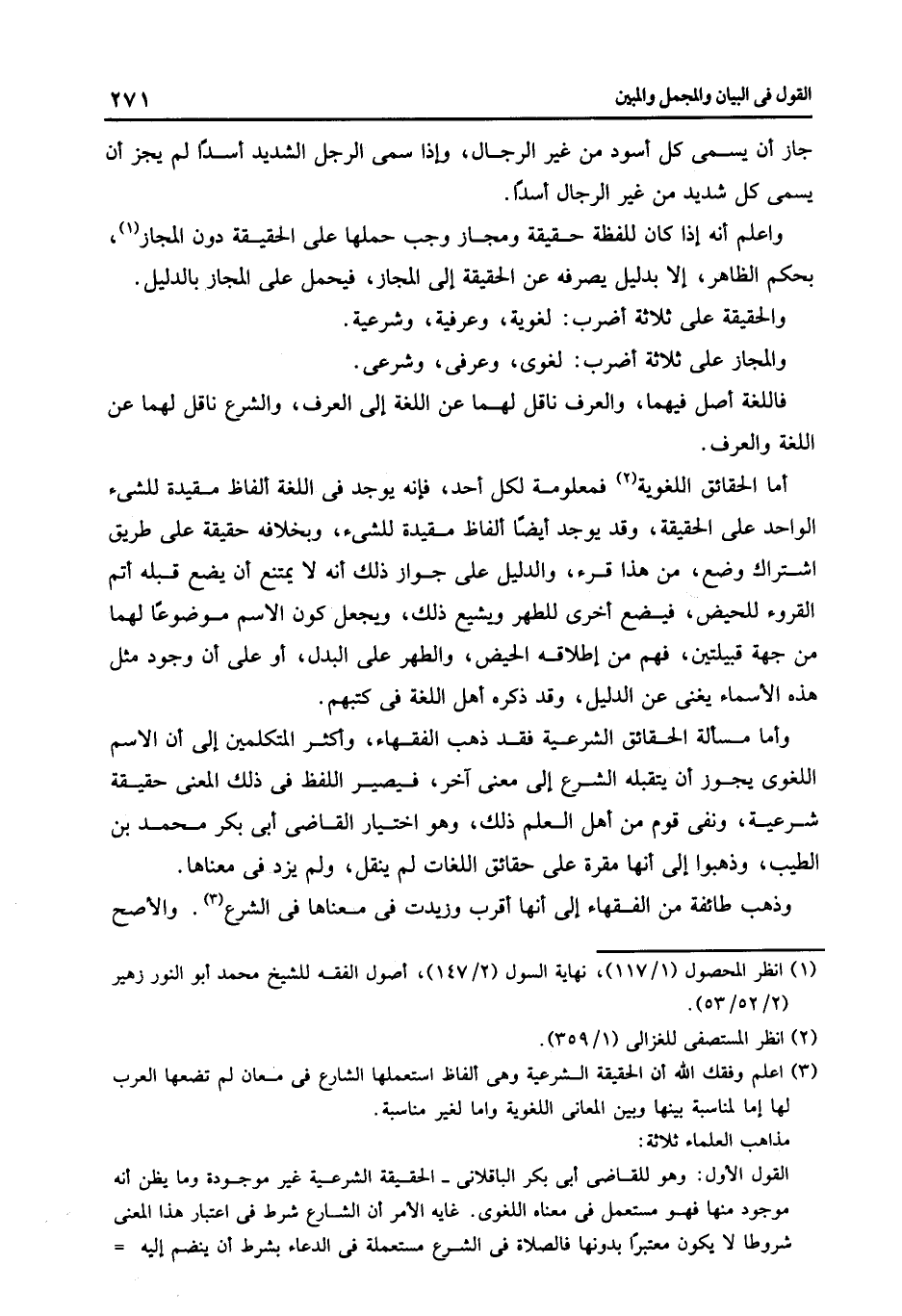 1 انظر المحصول 1/117 نهاية السول 2/147 أصول الفقه للشيخ أبو النور زهير 2/52/53.
