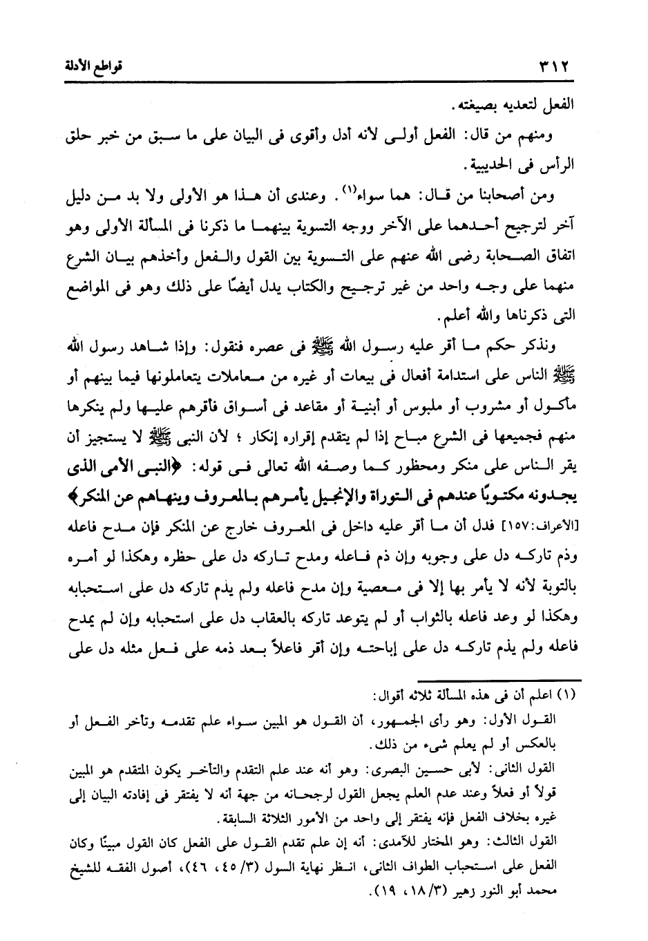 ومن أصحابنا من قال هما سواء1 وعندى أن هذا هو الأولى ولا بد من دليل آخر لترجيح أحدهما على الآخر ووجه التسوية بينهما ما ذكرنا فى المسألة الأولى وهو اتفاق الصحابة رضى الله عنهم على التسوية بين القول والفعل وأخذهم بيان الشرع منهما على وجه واحد من غير ترجيح والكتاب يدل أيضا على ذلك وهو فى المواضع التى ذكرناها والله أعلم.