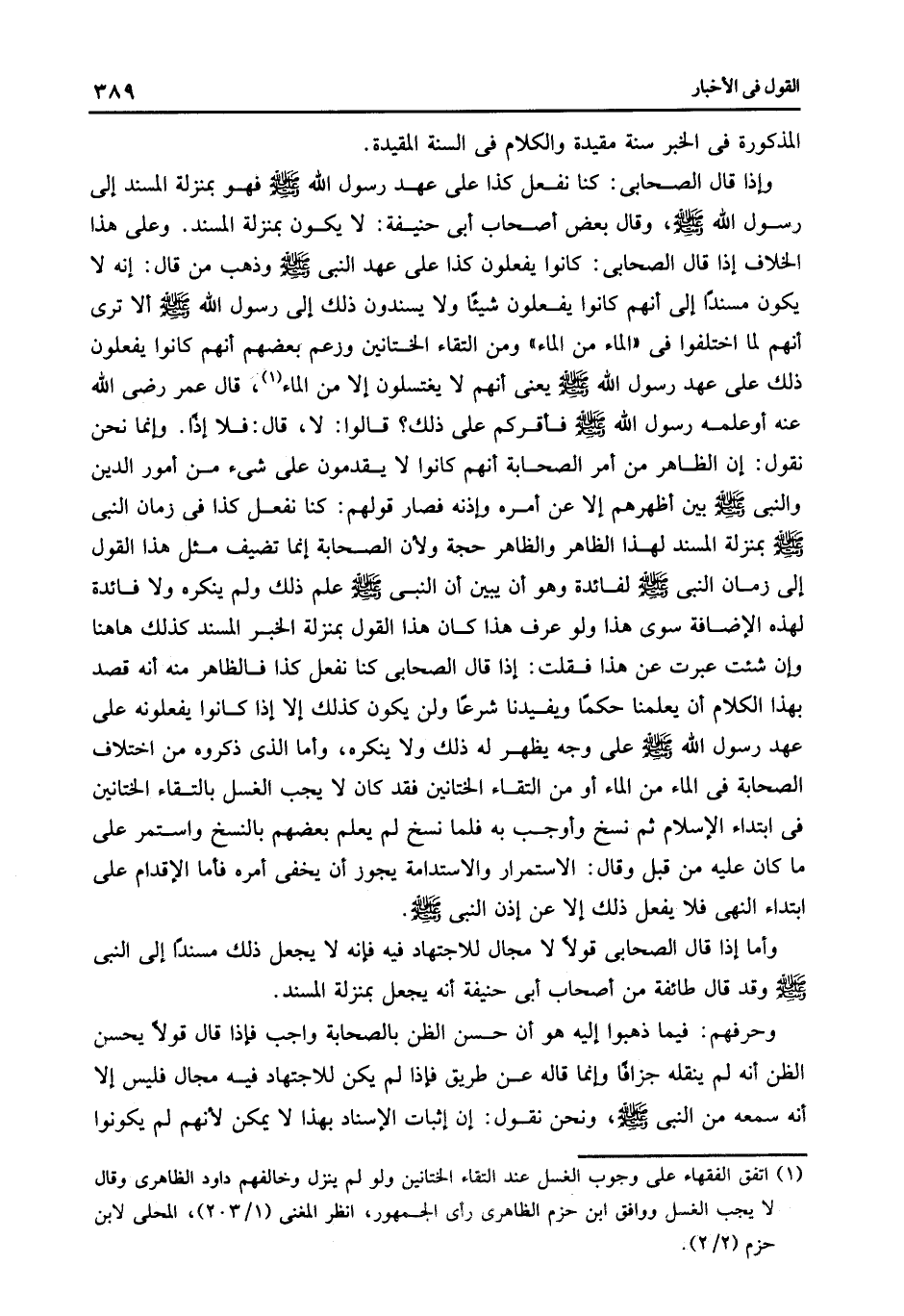 1 اتفق الفقهاء على وجوب الغسل عند التقاء الختانين ولو لم ينزل وخالفهم داود الظاهري وقال لا يجب الغسل ووافق ابن حزم الظاهري رأي الجمهور انظر المغني 1/203 المحلى لابن حزم 2/2.