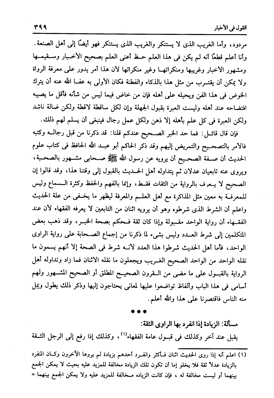 مسألة الزيادة إذا انفرد بها الراوى الثقة: