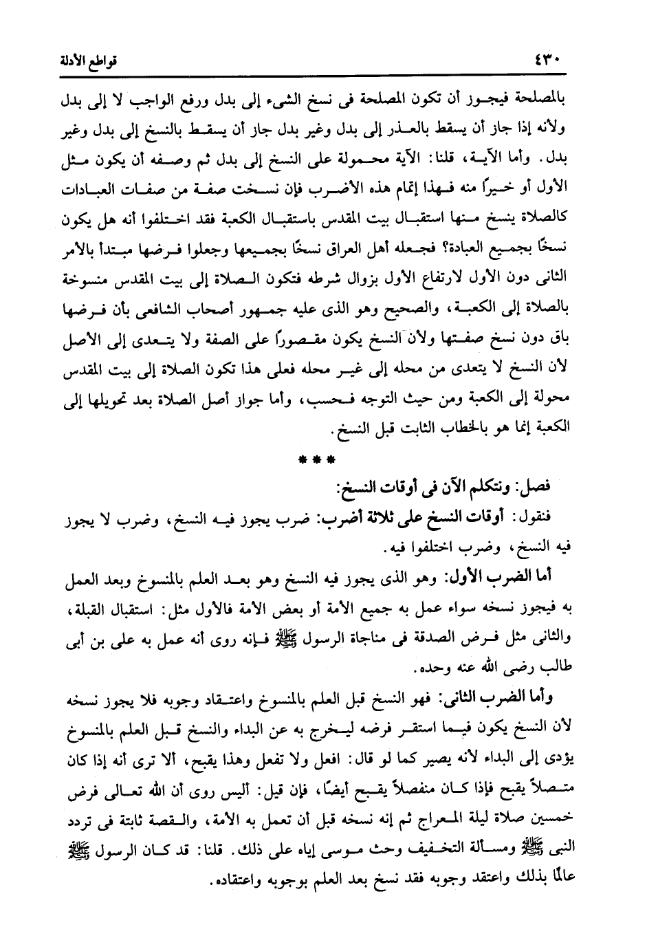 فنقول أوقات النسخ على ثلاث أضرب ضرب يجوز فيه النسخ وضرب لا يجوز فيه النسخ وضرب اختلفوا فيه.