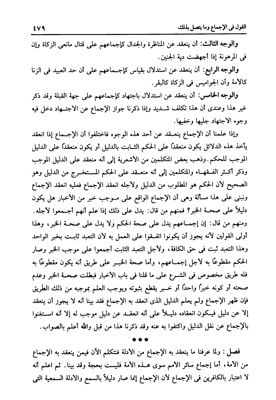 والوجه الثالث: أن ينعقد عن المناظرة والجدال كإجماعهم على قتال مانعي الزكاة وأن في المرهونة إذا أجهضت دية الجنين.
