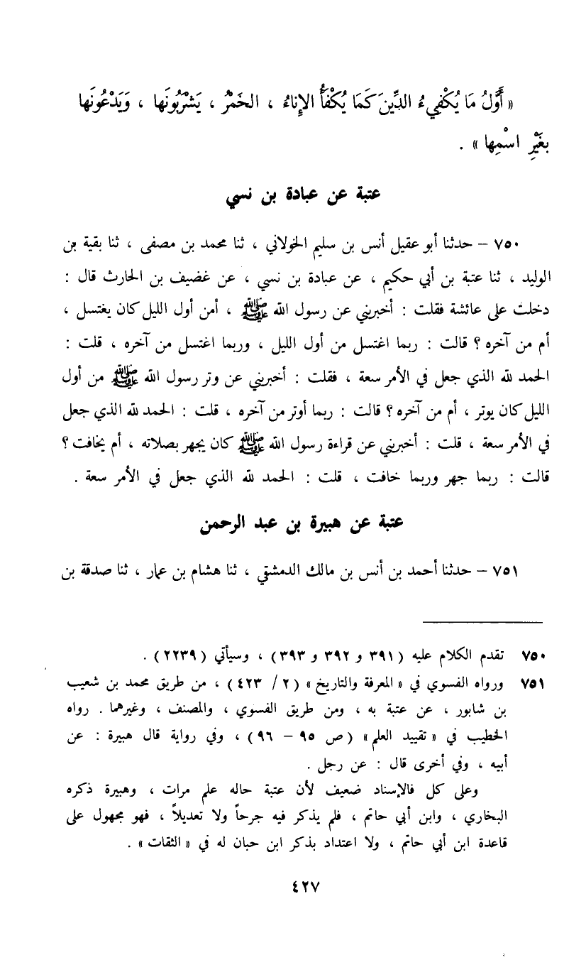 §عُتْبَةُ عَنْ هُبَيْرَةَ بْنِ عَبْدِ الرَّحْمَنِ