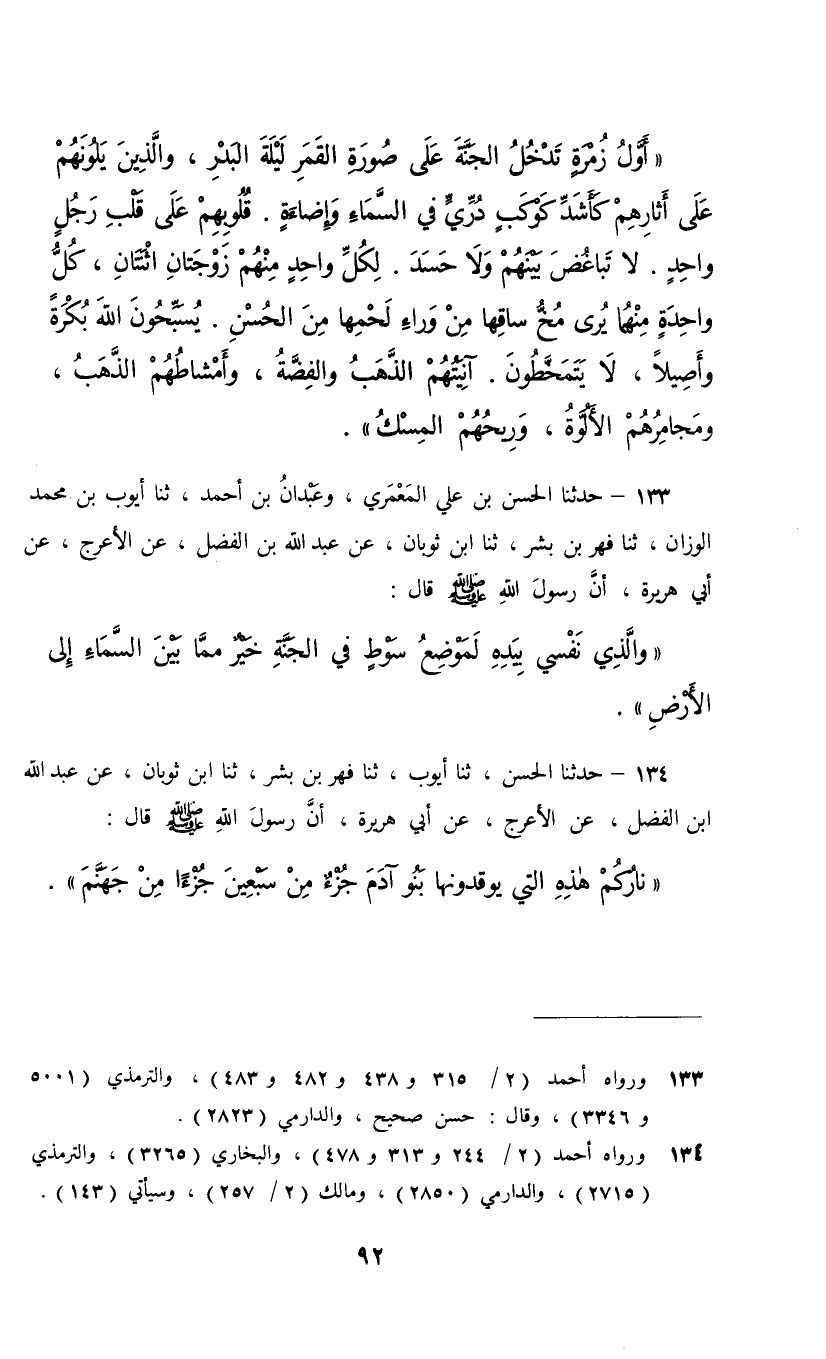 134 - حَدَّثَنَا الْحَسَنُ، ثنا أَيُّوبُ، ثنا فِهْرُ بْنُ بِشْرٍ، ثنا ابْنُ ثَوْبَانَ، عَنْ عَبْدِ اللَّهِ بْنِ الْفَضْلِ، عَنِ الْأَعْرَجِ، عَنْ أَبِي هُرَيْرَةَ، أَنَّ رَسُولَ اللَّهِ صَلَّى اللهُ عَلَيْهِ وَسَلَّمَ قَالَ: §«نَارُكُمْ هَذِهِ الَّتِي يُوقِدُونَهَا بَنُو آدَمَ جُزْءٌ مِنْ سَبْعِينَ جُزْءًا مِنْ جَهَنَّمَ»